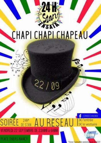 La première soirée des 24h* de Stan aura lieu au Réseau le vendredi 22 septembre à partir de 23h avec pour thème : soirée chapeaux ! Sortez donc vos plus beaux couvre-chefs : casquette, béret, bob, bonnet... on n’est pas difficiles !!