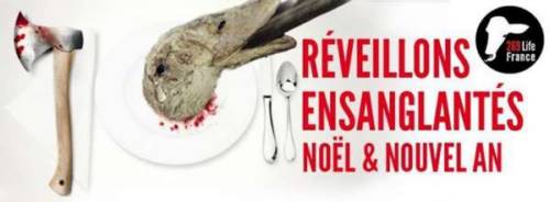 269 Life France organise un happening sanglant afin d’exposer aux yeux du public l’enfer que vivent les autres animaux pendant cette période de fêtes de fin d’année. Nous reconstituerons les scènes de fin d’année et mettrons en évidence le calvaire des animaux pour faire réfléchir le public.