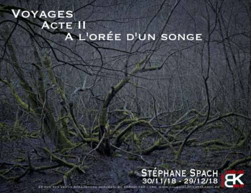 Stephane Spach nous invite dans un monde fantastique, juste au-delà de la lisière. Dans la forêt. Les décors sont merveilleux, les couleurs sensorielles, l’atmosphère irréelle. Ces paysages contemplatifs, un brin inquiétants, oscillent entre le conte et la science-fiction. La magie opère. La réalité des lieux est transcendée. Cet ailleurs métaphorique est proche de nous. Ce monde imaginaire est attrayant, mystique, surnaturel. Le calme surgissant trouve un écho à nos solitudes profondes. La forêt est ici un théâtre, un décor fantasmé, une allégorie. Ce voyage renvoie à notre enfance, à nos peurs. Le caractère onirique des paysages nous emporte. On cherche un signe, la course d’un lapin magique, une présence mystérieuse. Notre imaginaire enrichit ce que l’on voit, construit notre rapport au lieu, matérialise notre perception. Les décors, si soigneusement mis en scène, nous invitent à participer. Ce voyage est-il rêvé ? Existe- t’il réellement ?