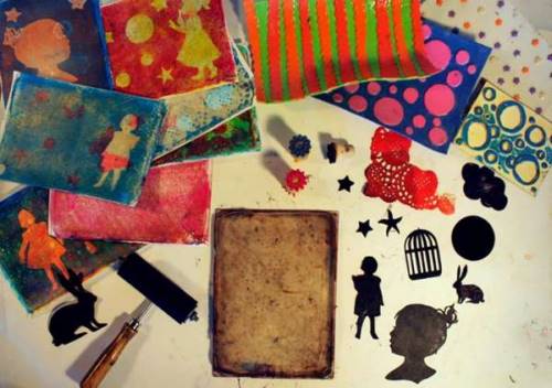 Le Monotype est un Procédé d’Estampe non Reproductible. Dans cet Atelier il se conjugue avec les Trésors Insoupçonnés de nos Cuisines afin de créer une Technique Accessible à tous et Facile à Réaliser ! La Gélatine Alimentaire permet ainsi une Initiation Facile aux Arts de l’Impression à Plat; pas besoin de Presse, une Simple Pression de la Main suffit pour Transférer son Dessin sur la Feuille. Pas besoin de savoir Dessiner, l’Image se construit par Pochoirs et Accumulation de Couche de Couleurs, c’est donc une Technique Idéale si vous êtes Créatifs et si vous voulez Découvrir de Nouvelles Manières de Créer Facile à reproduire chez vous mais aussi à Proposer en Activités aux Enfants !