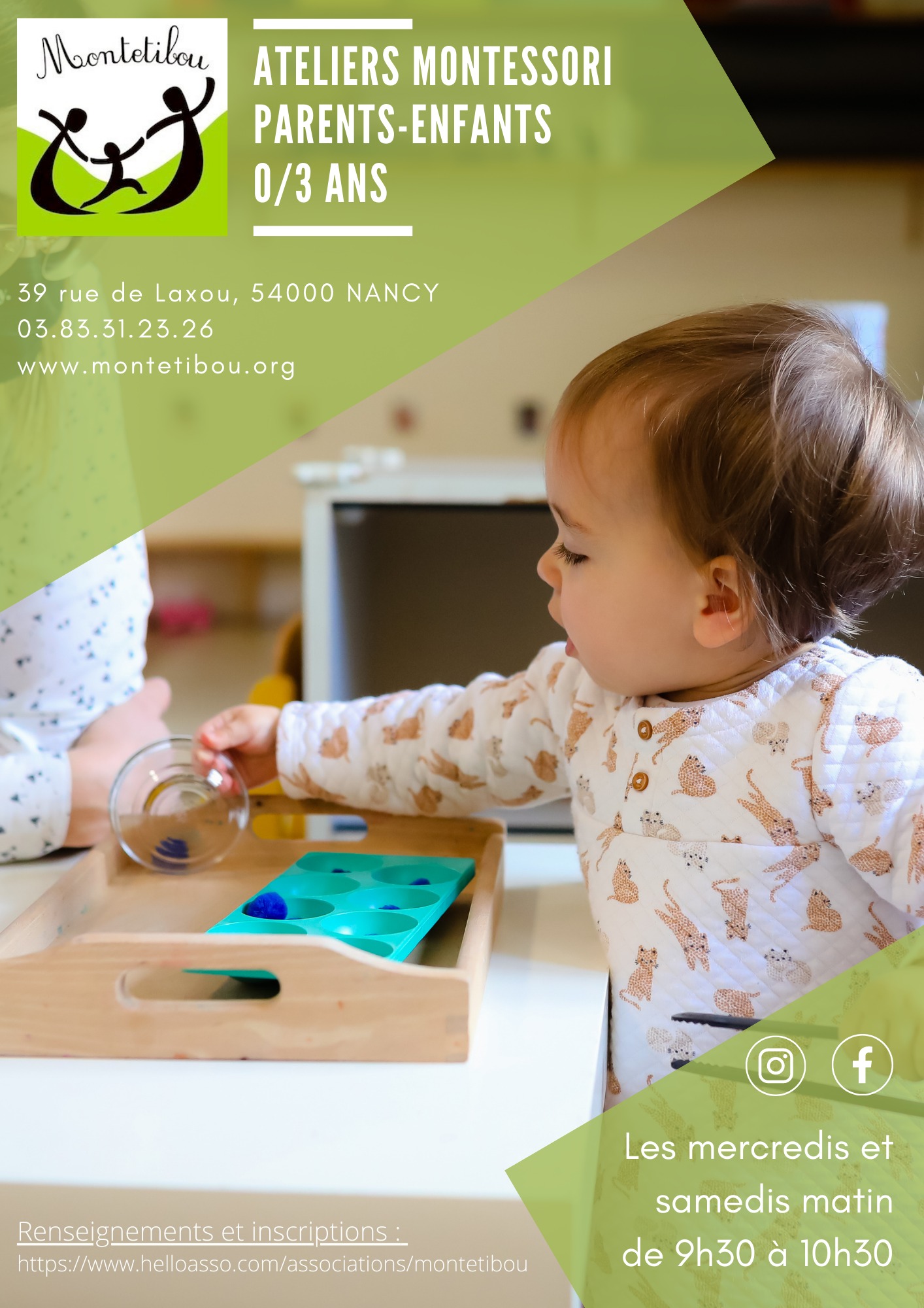 - d'ateliers Montessori parents/enfants les samedi matin pour les enfants de 0 à 6 ans