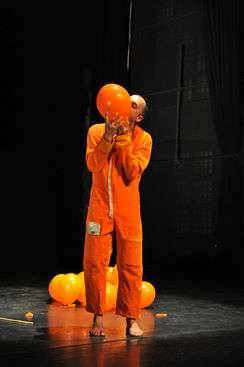 Un homme et des baudruches jouent avec la gravité. A la fois dompteur et dompté, cette espèce de synesthète a de gros problèmes avec l’air. Entre deux respirations, il réveille notre écoute au présent. Cet absurde théâtre musical, presque rond et plein de vides, réoxygènera les poumons de tous âges. Il existe tout de même quelques risques d’étouffement, de fuite ou de ballonnement. Un solo aérophagique à respirer avec les oreilles.