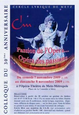 De 15h à 15h45 : « Les sources littéraires des livrets d’opéras », par Danielle PISTER, Directeur du Département de Lettres modernes à l’Université Paul Verlaine de Metz, membre et conseillère cul- turelle du Cercle Lyrique de Metz