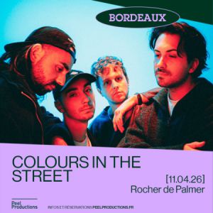 PRÉSENTE : COLOURS IN THE STREET'Colours in the Street s’inscrit dans le mouvement d’une pop massive, élégante, percutante, taillée pour les grandes scènes. Depuis plusieurs années, le groupe enchaîne les tournées avec des prestations scéniques remarquables en France et à l’international (Europe, Chine, Corée du Sud, Australie, Amérique du Sud…).