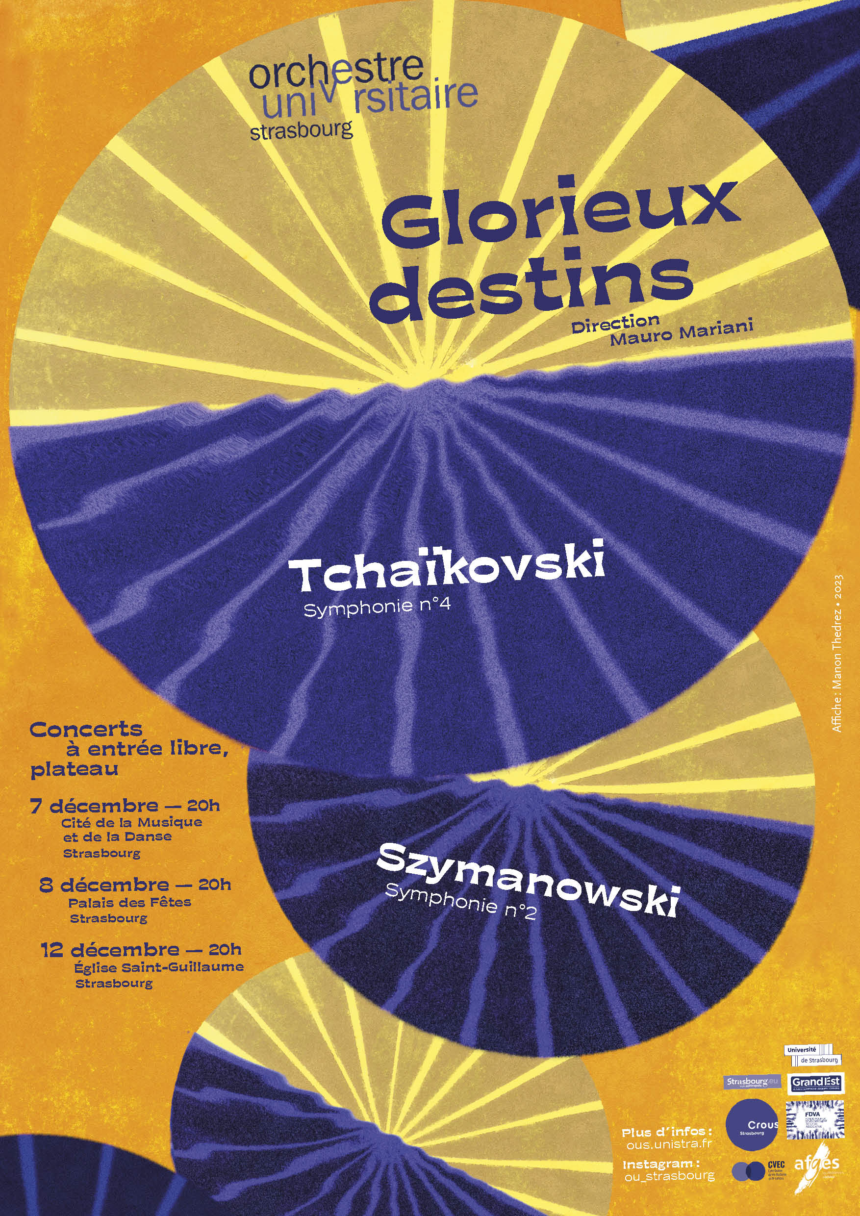 L'Orchestre Universitaire de Strasbourg, orchestre symphonique de 80 musiciens, en majorité étudiants à l’Université de Strasbourg, vous propose les premiers concerts symphoniques de sa saison ! Retrouvez-nous pour trois concerts intitulés "Destins glorieux".