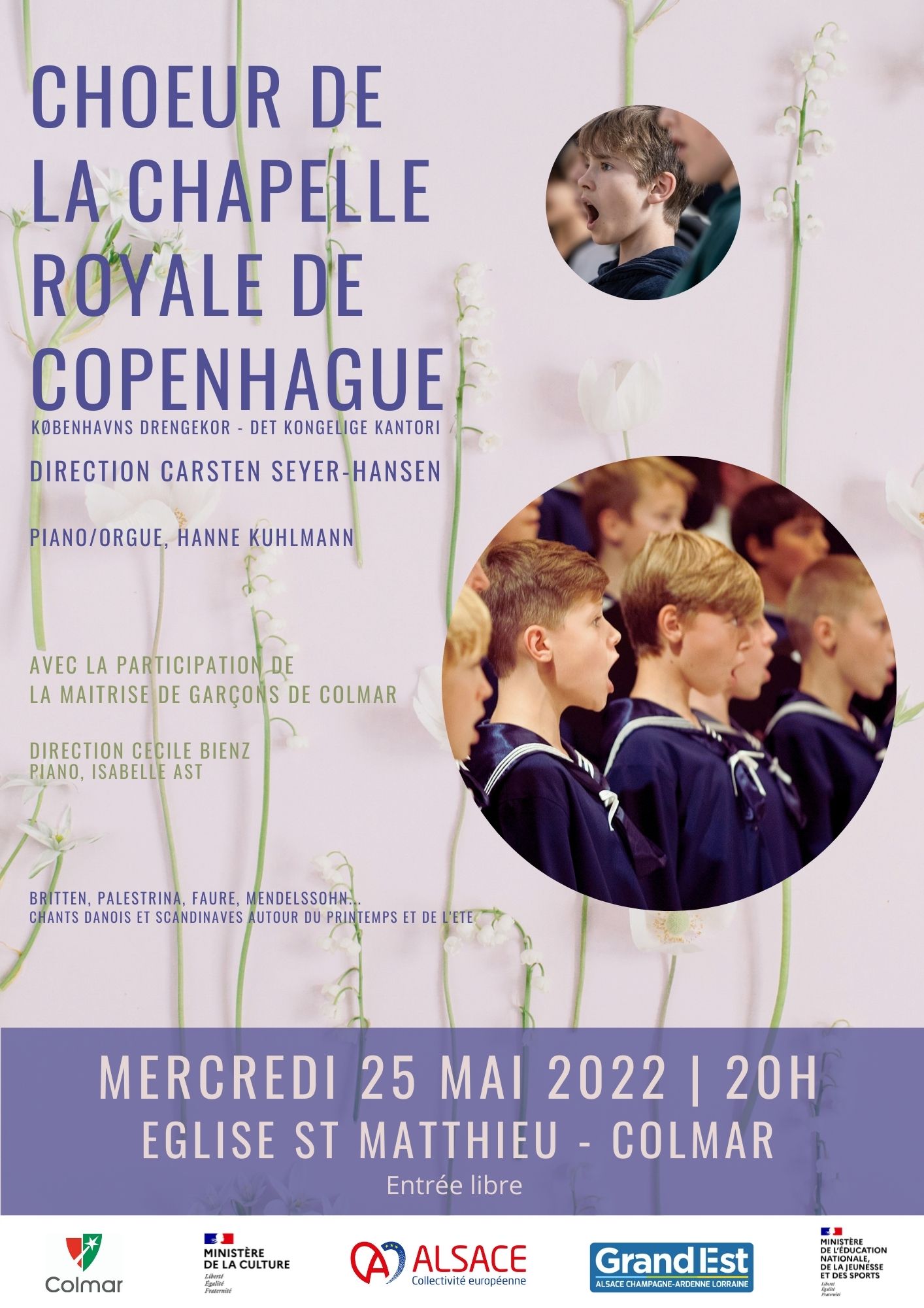La Maîtrise de Garçons de Colmar a l'immense plaisir d'accueillir le Choeur de la Chapelle Royale de Copenhague du 24 au 27 mai.