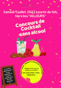 Votre mission : réaliser le cocktail (sans alcool) fruits ou légumes qui ravira le jury. Proposer votre cocktail seul, en équipe, en famille … Le(s) cocktail(s) gagnant(s) sera vendu à la carte de 3ème Rive, café associatif d’Épinal. Récompenses ! Règlement sur demande à contact@3eme-rive.org . Venez nous étonner et charmer nos papilles en proposant votre cocktail, ou en participant à la dégustation en tant que membre du jury.