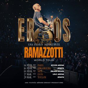 La nouvelle tournée mondiale débutera le 14 février 2026 à l'Accor Arena de Paris. C'est le début d'un voyage passionnant à travers 30 pays, qui n'a qu'une seule destination : le cœur de son public, partout dans le monde.Una Storia Importante est le titre d'une tournée qui raconte le lien profond entre Eros Ramazzotti et son public. Un lien authentique et durable qui traverse le temps, les frontières et les générations. Une histoire faite de musique, d'émotions et de partage, qui continue de s'écrire avec la même force depuis toujours, alimentée par plus de 80 millions de disques vendus et plus de 9,3 milliards de streams dans le monde. Retrouvez Eros Ramazzotti en tournée dans toute la France !