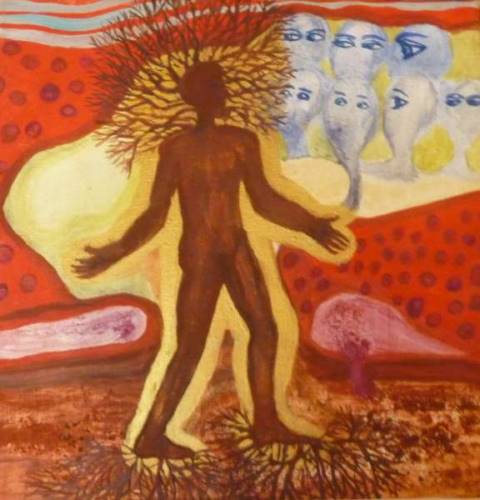 Invitation au voyage intérieur, chaque tableau représente un ou plusieurs personnages rencontrés durant ce voyages: démons ou déesses, ils ont tous quelque chose à nous dire...saurons nous les écouter?