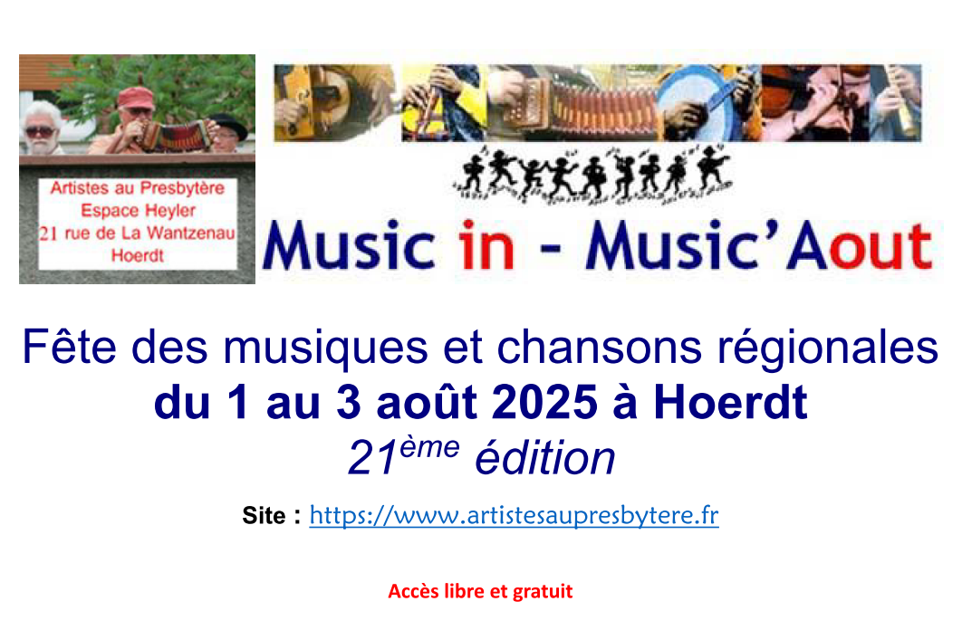 Depuis sa création, en 2005, le festival Music in - Music’Aout, Fête des Musiques et Chansons Régionales, a pour seule ambition d'offrir gratuitement en partage, un temps de fête, un espace de convivialité, un moment de spiritualité, hors de tout esprit commercial, de faire la fête, chanter, danser et jouer ensemble sur les musiques de toutes régions.