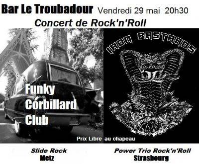 Premier concert "officiel", de Funky Corbillard Club , groupe de Rock’n’Roll. L’occasion de découvrir notre musique slide rock que nous paufinons depuis quelques mois dans notre garage.