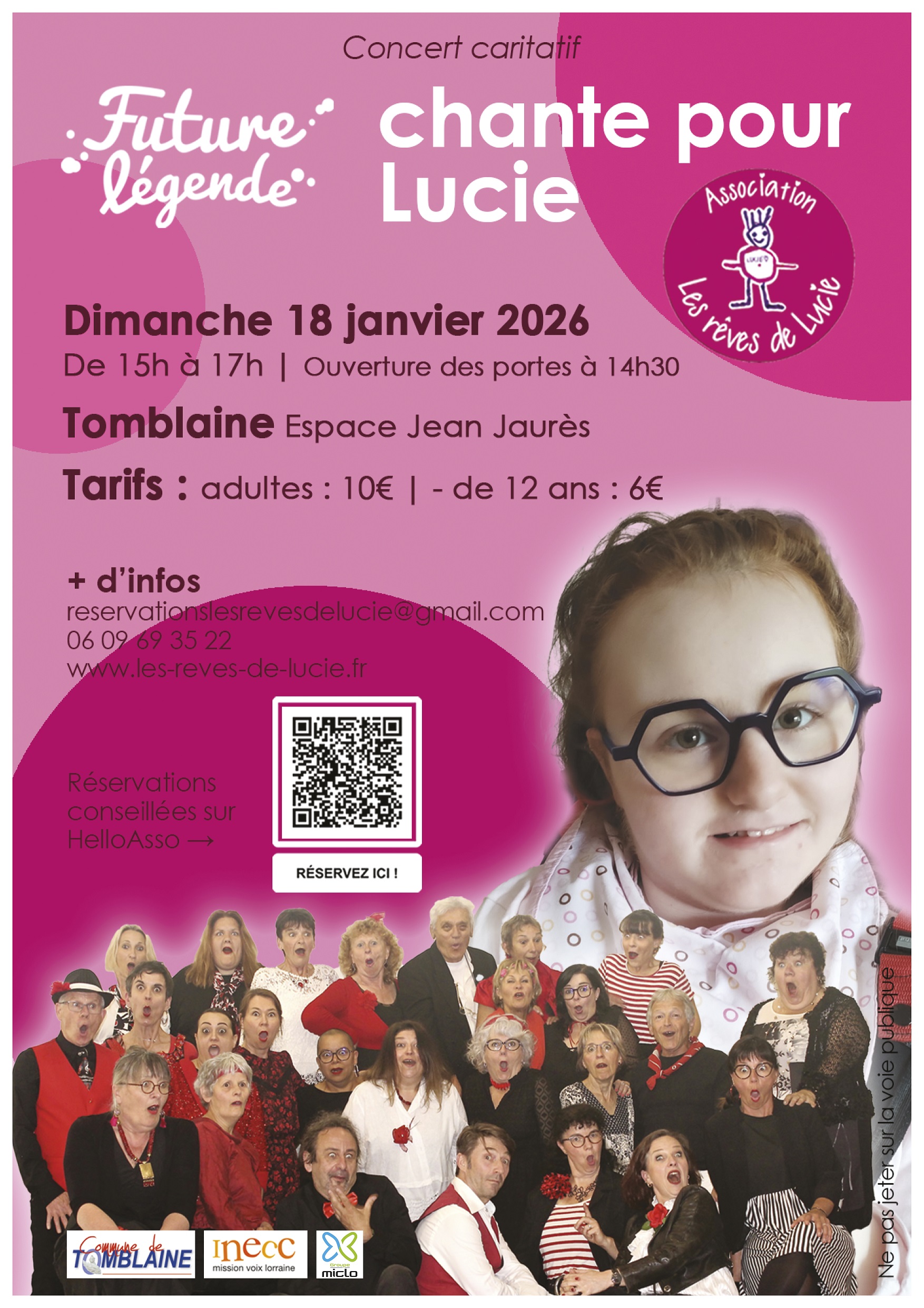 Réservations (conseillées) : reservationslesrevesdelucie@gmail.com / 06 09 69 35 22 / https://www.helloasso.com/associations/les-reves-de-lucie/evenements/future-legende-chante-pour-lucie