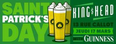 Rejoignez nous le 17 mars pour fêter la Saint Patrick au King’s Head ! La soirée promet d’être verte et Guiness, notre partenaire sera de la partie !!! Venez Nombreux !