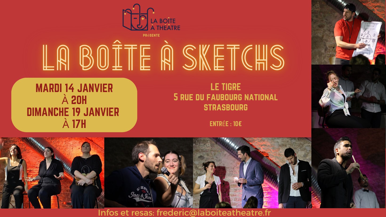 La Boîte à Théâtre vous présente sa Boîte à Sketchs : la revue Strasbourgeoise où tous les mois c'est un nouveau spectacle tellement on a des bêtises à raconter !