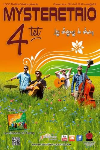 AUX QUATRE COINS DU GLOBE, MYSTÈRE TRIO ÉVOLUE MAINTENANT EN QUARTET EN INTÉGRANT LA CONTREBASSE. ENTRE ARRANGEMENTS ORIGINAUX DU RÉPERTOIRE DE DJANGO REINHARDT ET COMPOSITIONS PERSONNELLES, LE COMBO TOULOUSAIN DISTILLE UN SWING NOMADE ET RACÉ, PUISANT DANS LES RACINES WORLD, GROOVE, JAZZ, MANOUCHES ET HISPANISANTES
