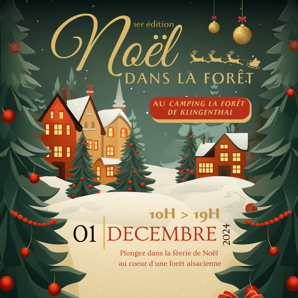 Le marché de Noël aura lieu au cœur du camping La Forêt, un camping situé à l’entrée de Klingenthal en Alsace. Un environnement propice à la féerie, qui vous plongera à coup sûr dans l’esprit même de la magie de Noël.