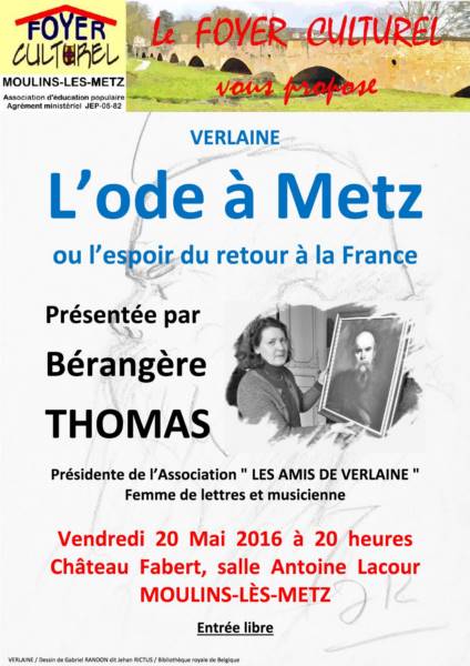 Conférence présentée par Bérangère THOMAS, Présidente-Fondatrice de l’Association "LES AMIS DE VERLAINE" et de "LA MAISON DE VERLAINE", Maison d’écrivain et de Patrimoine littéraire à Metz.