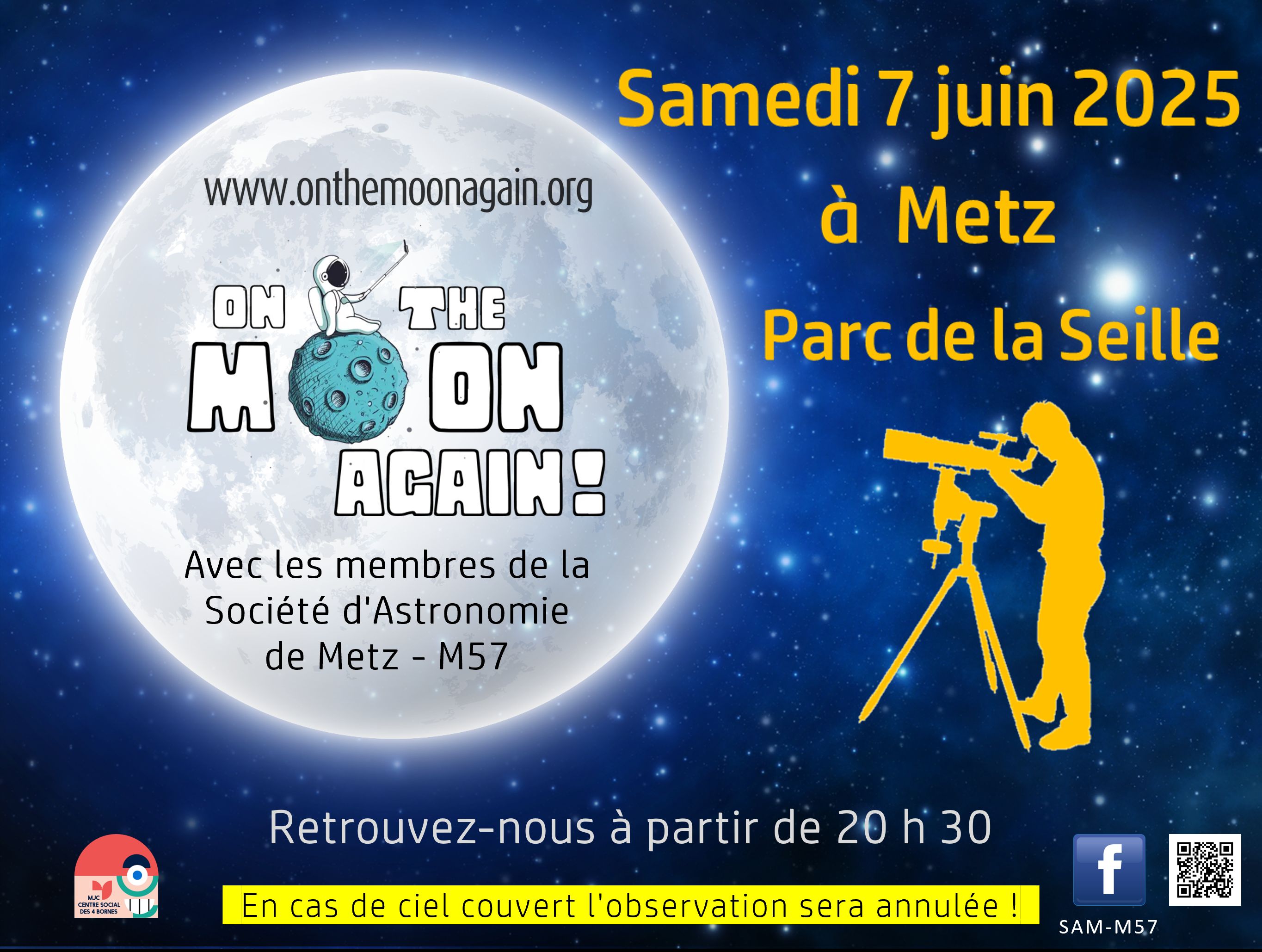 Les membres de la Société d'Astronomie de Metz - M57 vous invitent à venir observer la Lune avec eux dans leurs lunettes, télescopes et jumelles à Metz, à côté de chez vous.