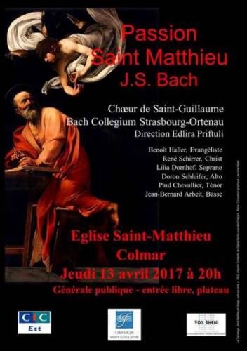 Le Choeur de Saint-Guillaume a l’immense plaisir de vous convier à la Générale publique de son prochain concert de la Passion selon Saint-Matthieu de J-S Bach, le 13 avril 2017 à 20H00 en l’église Saint-Mathieu de Colmar.