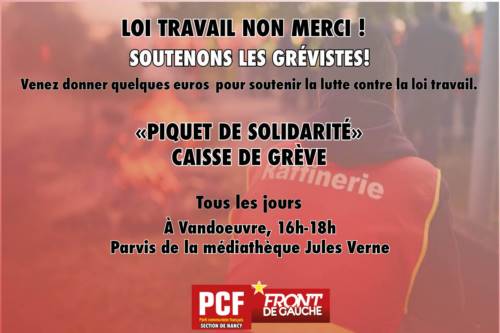 Venez remplir la caisse de grève sur le piquet de solidarité, tous les jours de 16H à 18H !