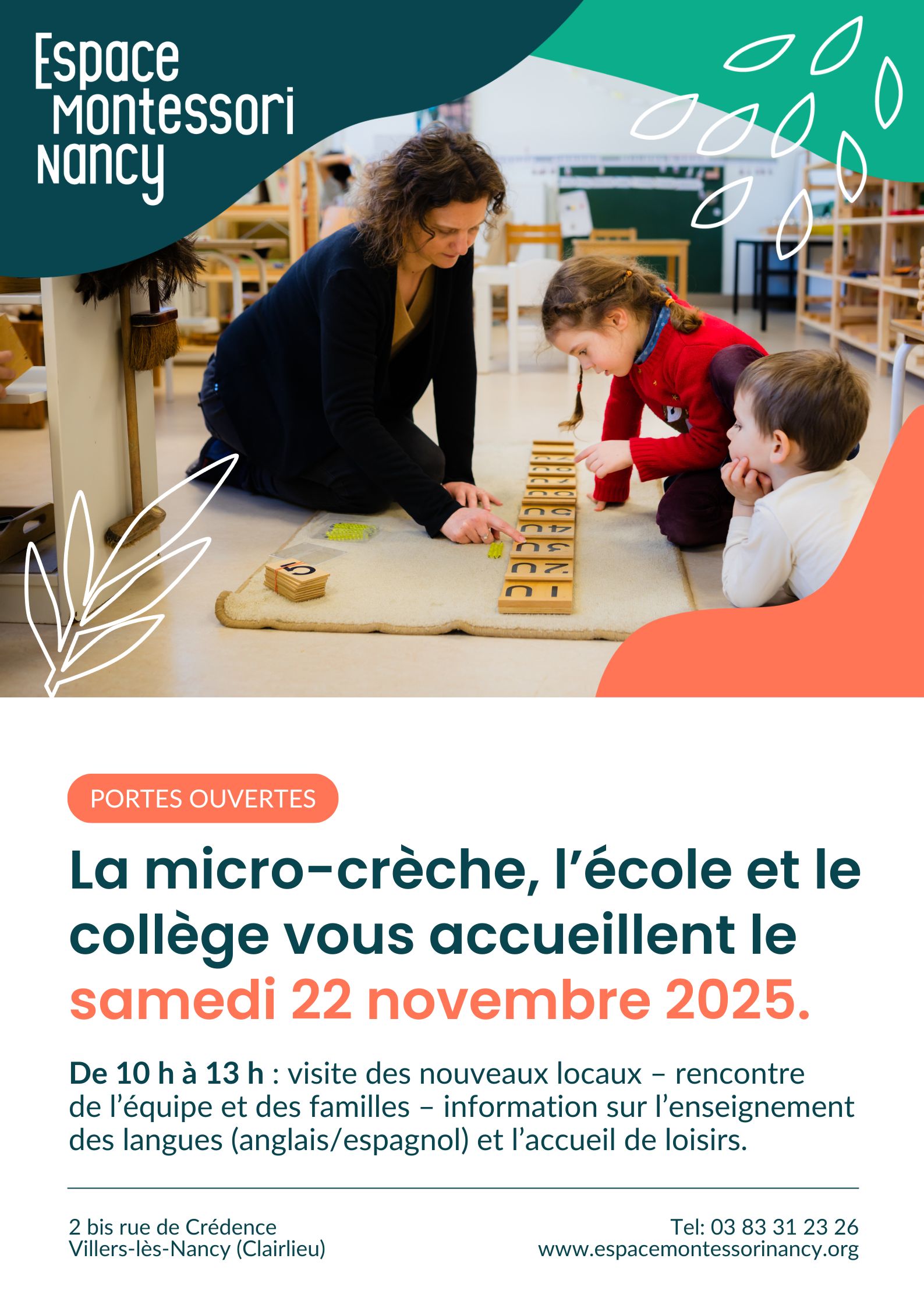 L'espace Montessori, ouvert en 2007, est situé à Villers-lès-Nancy (54). Il se compose actuellement :