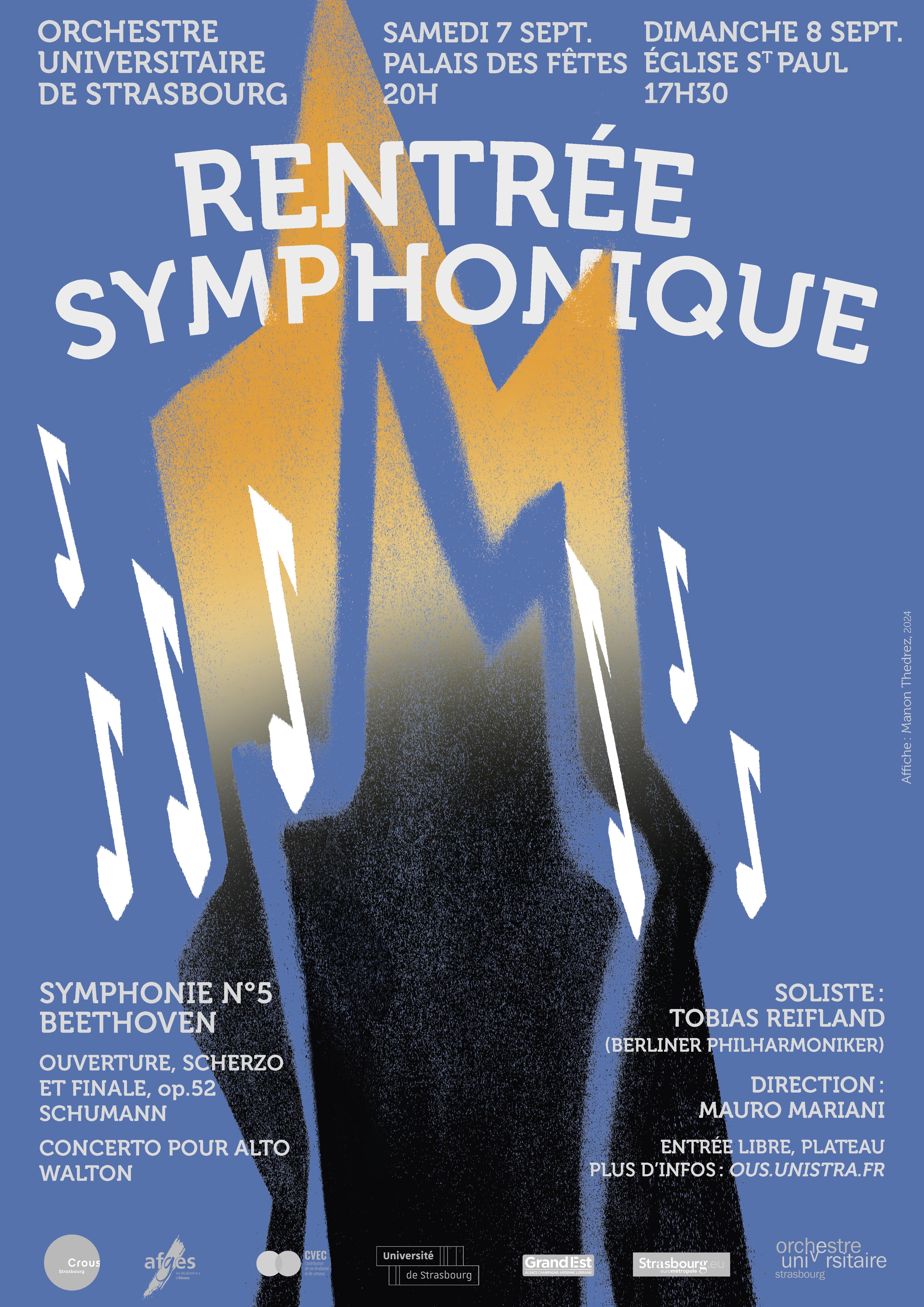 L’Orchestre Universitaire de Strasbourg, orchestre symphonique composé majoritairement d’étudiants de l’Université de Strasbourg, lance sa saison 2024-2025 avec deux nouveaux concerts symphoniques !