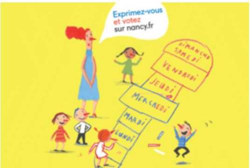 À Nancy, la Ville met en ligne un site internet dédié à la concertation : participez.nancy.fr. Il permet de recueillir l’avis de tous les acteurs concernés afin de définir ensemble le rythme scolaire qui sera appliqué à la rentrée 2018.