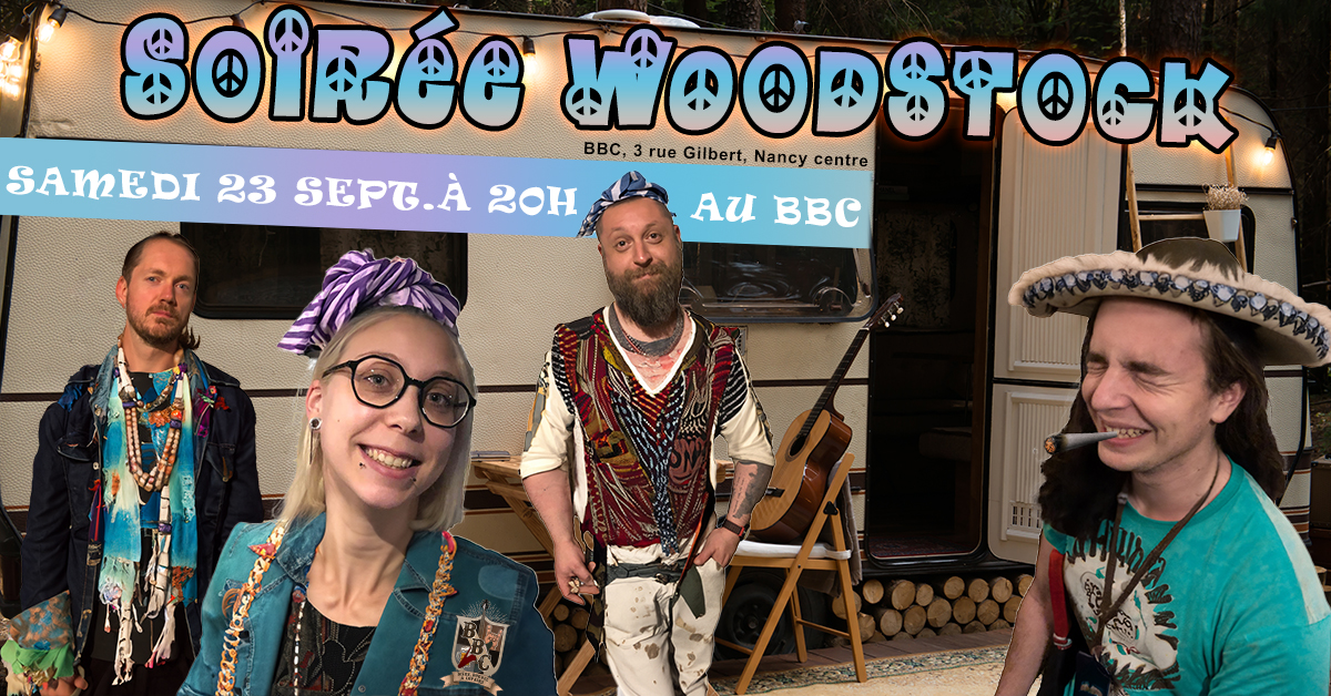 Ne manquez pas cette opportunité de revivre l'esprit de Woodstock à Nancy. Retrouvez-nous le samedi 23 septembre à 20 heures pour une soirée de musique, de partage et de souvenirs.
