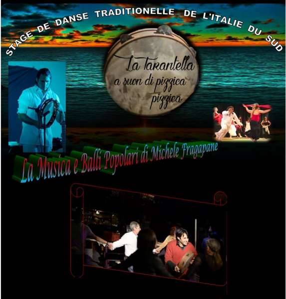 Michele Fragapane :metteur en scène,acteur, musicien, interprète de musique populaire d’Italie du Sud. Danses traditionnelles du Sud de l’Italie : pizzica, tammurriata des danses qui font partie des tarentelles,( danses traditionnelles du sud de l’Italie) qui se pratique en rond .Michele Fragapane vous transmet les fondamentaux de ces danses autrefois transe thérapeutique ! En solo, en couple, ou en famille - dansez !