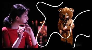 Stockhausen raconté aux enfants met en scène une rencontre fictive entre le compositeur allemand et une musicienne japonaise admiratrice de son oeuvre. Les deux voyageurs réalisent que la meilleure manière de se comprendre est de dialoguer avec leurs instruments dans la belle « langue » inventée par Stockhausen. La flûtiste peint un paysage de roseaux sauvages... Le bassoniste revêt un costume d’ours lors de l’exécution de son grand solo. L’intrigue cède alors la place à un voyage musical et coloré, riche en surprises, dans l’univers de Stockhausen. Une initiation ludique et poétique, pour petits et grands, à la musique d’aujourd’hui.