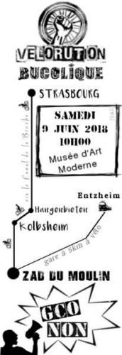 La Vélorution randonneuse du 9 juin ambitionne de vous emmener le long de la Bruche jusqu’au Moulin de Kolbsheim, où une nouvelle zone à défendre s’est établie.