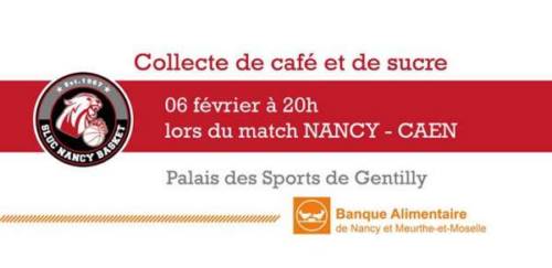 participez à la collecte de café et de sucre du SLUC le 6 février lors du match Nancy-Caen au profit de la Banque Alimentaire de Meurthe et Moselle