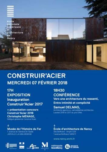 Samuel Delmas, architecte lauréat du Trophée Eiffel, donnera une conférence à l’école d’architecture de Nancy (1 avenue de Boffrand, 54000 Nancy) le 07 février à 18h30 sur la thématique « Vers une architecture du ressenti, Entre intimité et complicité ».