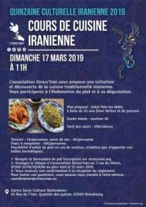 Dans le cadre de la Quinzaine Culturelle Iranienne, l’association Strass’Iran vous propose une séance d’initiation et découverte de la cuisine iranienne