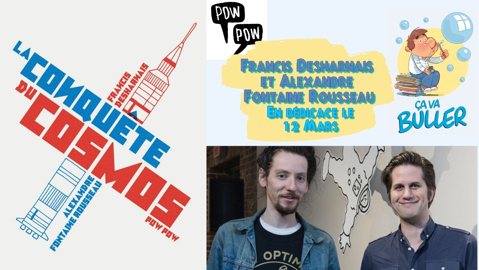 Partez pour un voyage plein de bulles dans l'espace. Une grande conquête s'annonce. Venez rencontrer Francis Desharnais et Alexandre Fontaine Rousseau autour d'une séance de dédicace cosmique.