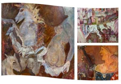 L’artiste-peintre Marie Tsaniras présentera ses œuvres du 16 au 24 mars à l’espace Stricher. Très jeune déjà, Marie Tsaniras est fascinée par le processus de création : « Ce n’est pas tant l’esthétique de l’ œuvre qui m’interpelle, ce qui me touche c’est le pouvoir qu’a l’ œuvre de réveiller les émotions et de bousculer les clichés. » À la manière de l’artisan, Marie Tsaniras travaille la matière, la façonne. Ses toiles et autres supports accueillent des matériaux divers choisis selon l’inspiration immédiate et spontanée : « J’utilise des fils, plumes, une multitude de petites choses insignifiantes qui donnent ainsi vie à des êtres « chairs ». J’aime façonner, coller, en fait j’aimerais sculpter mes toiles. Je suggère le nu et ensuite, je le rhabille de ces petites choses anodines, récupérées. Créer c’est résister, exister, faire exister et transmettre des émotions.»