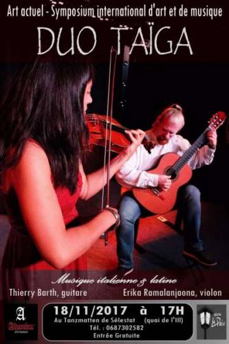 Violoniste, guitariste, compositeur, bête de scène, cette "rock star" de son époque est souvent adoré, nourrissant de nombreux mythes sur sa vie, il est l’un des musiciens les plus créatifs de son temps. C’est dans le répertoire écrit pour les deux instruments, qu’Erika RAMALANJAONA et Thierry BARTH vont vous faire découvrir toute la finesse de son écriture. Ses œuvres d’une rare élégance, sont aussi un reflet du bel canto, très en vogue à son époque au sein de l’art de l’opéra. Pour terminer ce concert les artistes vous réservent des œuvres chaleureuses aux couleurs de l’Amérique latine, aux histoires passionnantes. A la fin du concert les artistes seront à la disposition du public pour une rencontre dédicace de leur album "Taïga Sonoris" dont ils vous joueront des extraits. Voilà plus d’un an que le Duo parcourt les routes de la région pour sa tournée de promotion.