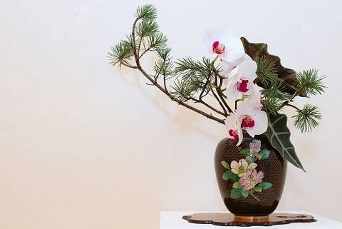 Au contraire de la forme décorative des arrangements floraux dans les pays occidentaux, l’arrangement floral japonais crée une harmonie de construction linéaire, de rythme et de couleurs. Alors que les Occidentaux tentent d’accentuer la quantité et les couleurs des fleurs, portant leur attention essentiellement sur la beauté de la fleur, les Japonais accentuent l’aspect linéaire de l’arrangement. Ils ont développé un art qui valorise aussi bien le vase, les tiges, les feuilles et les branches que la fleur elle-même. La structure complète de l’arrangement floral japonais est axée sur trois points principaux symbolisant le ciel, la terre et l’humanité à travers les trois piliers, asymétrie, espace et profondeur.