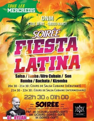 ## 22H30 à 1H00 du mat’ > Soirée Fiesta Latina by Dj Kylian