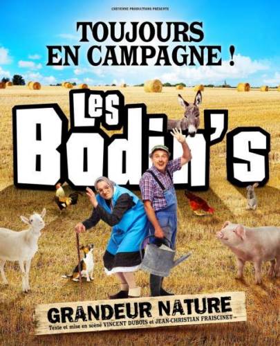 Synopsis: Pendant les vacances, Julie, jeune parisienne qui fait les 400 coups et le désespoir de ses parents, est placée chez des cousins éloignés, Les Bodin’s. Les Bodin’s Grandeur Nature, ce phénomène burlesque créé par Vincent DUBOIS et Jean-Christian FRAISCINET, auteurs, metteurs en scène et comédiens, triomphe à Descartes en plein air depuis plus de 13 ans et dans tous les zéniths de France depuis septembre 2015.