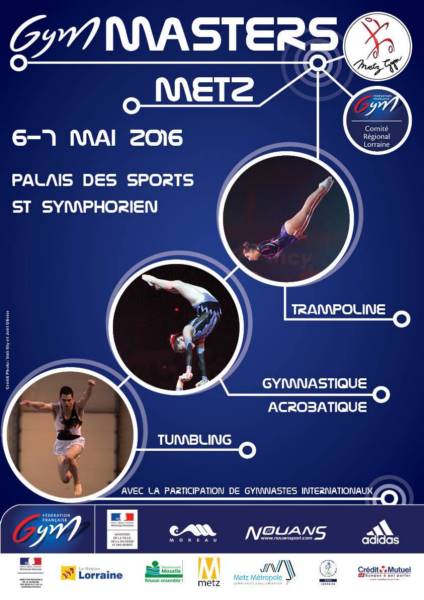 Metz-Gym et Le Comité de Lorraine de Gymnastique organise les 6 et 7 mai 2016, au Complexe sportif Saint Symphorien de Longeville-les-Metz, la finale nationale des MASTERS qui regroupe les disciplines suivantes de la gymnastiques: la Trampoline, Le tumbling et la Gymnastique Acrobatique. Près de 300 participants français et étrangers sont attendus. Venez nombreux admirer le spectacle !!!