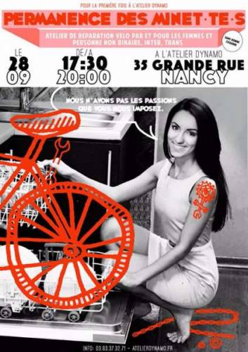 Cette permanence a pour but d’améliorer les conditions des femmes, personne non-binaire, inter et trans, dans l’atelier; de leur permettre de s’approprier les lieux, de se rencontrer, de se soutenir et de... REPARER LEUR VELO!