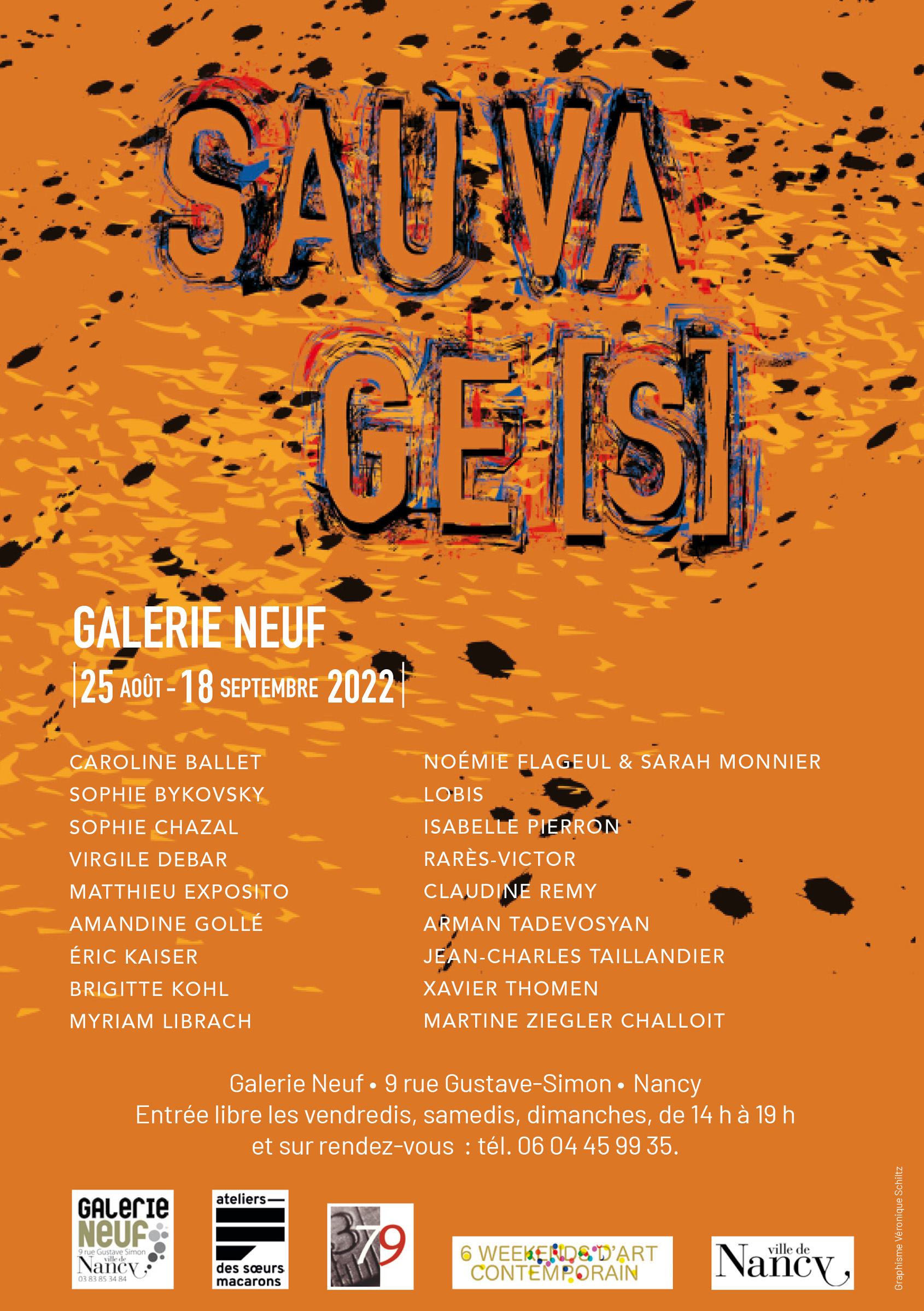 Les artistes : Sophie Chazal, Myriam Librach, Brigitte Kohl, Matthieu Exposito,Virgile Debar, Caroline Ballet, Jean Charles Taillandier, Xavier Thomen, Eric Kaiser, Amandine Gollé, Lobis, Sarah Monnier, Isabelle Pierron, Claudine Remy, Arman Tadevosyan, Victor-Rarés, Sophie Bykovsky, Noémie Flageul, Martine Ziegler Challoit.