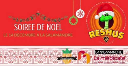 Les étudiant.e.s infirmier.e.s vous attendent à partir de 23h à la Salamandre vêtus de ROUGE ET BLANC... sans oublier votre ACCESSOIRE DE NOEL !